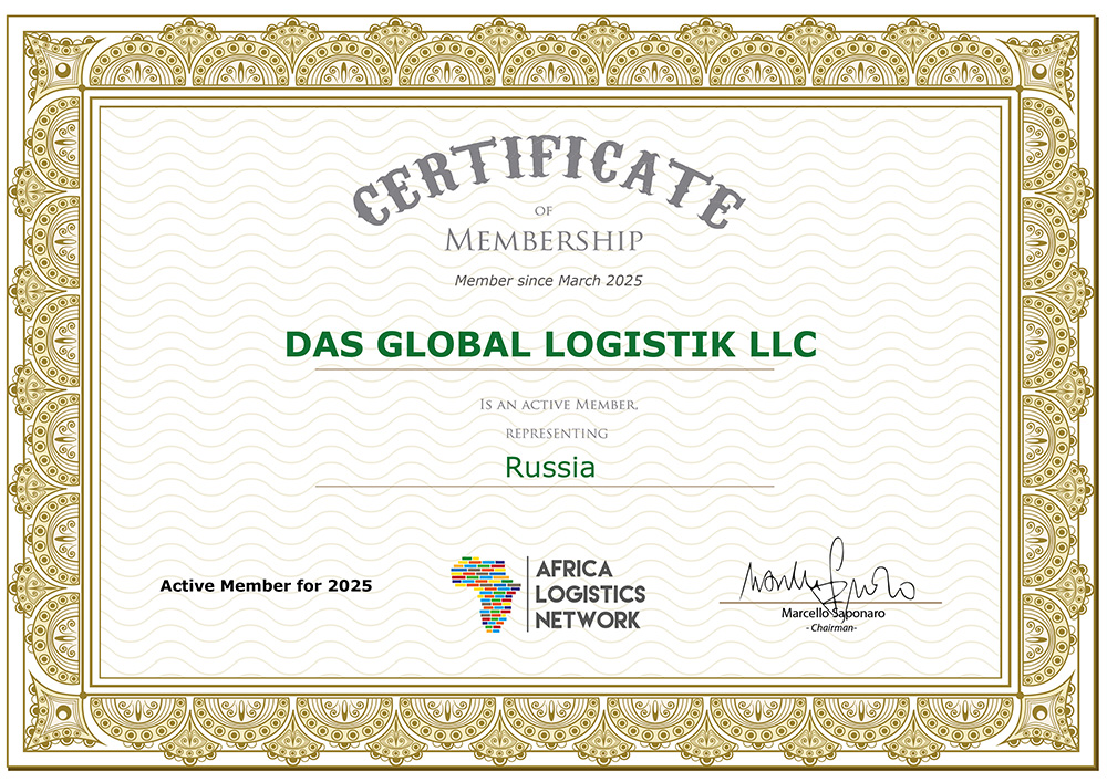 • Сертификат, подтверждающий членство в Africa Logistics Network (ALN) на 2026 год.